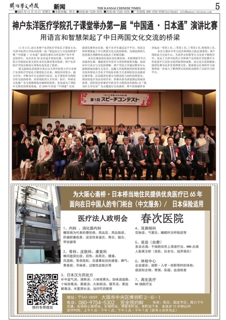関西華文時報では、11月2日に実施した「中国通・日本通スピーチコンテスト」について取り上げていただきました。