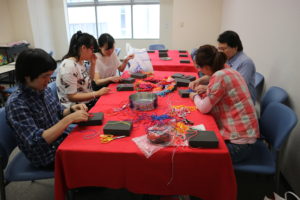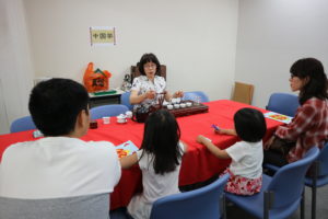 お腹がいっぱいになった後は書道、中国茶、中国結び、中国切り絵のブースごとに分かれて中国文化体験です!