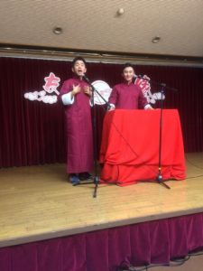 次の写真に写る彼らは“相声”、日本でいう漫才を披露されました。もちろん中国語で披露されています!