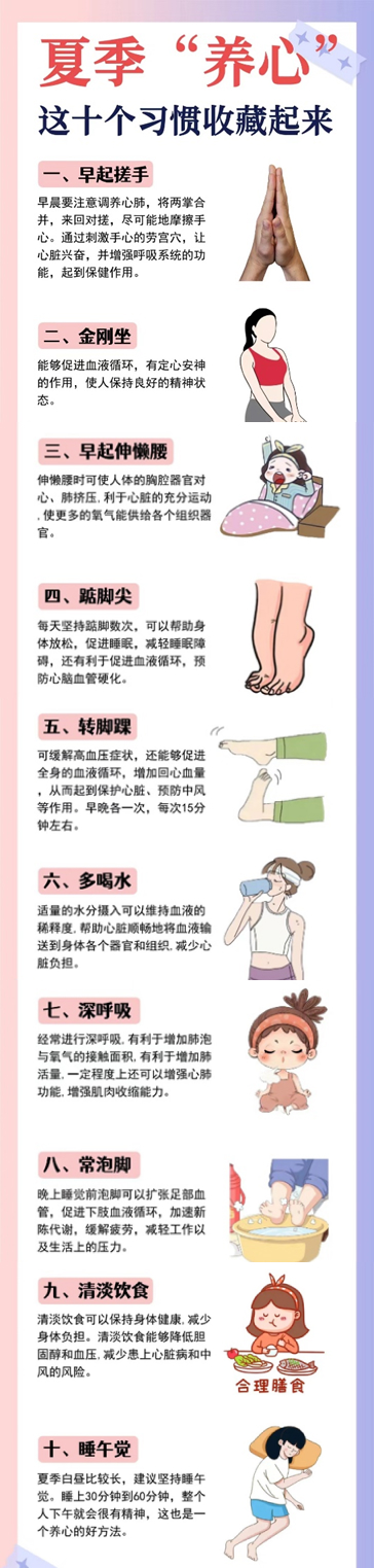 xià jì hěn shì hé yǎng shēng ,shēn tǐ bù hǎo de rén zuò hǎo yǎng shēng ,néng gòu ràng shēn tǐ jǐn zǎo huī fù 。zài wǔ zàng zhī zhōng ,xīn shǔ huǒ yǔ xià xiāng hé ,xià tiān shì yí yǎng xīn 。