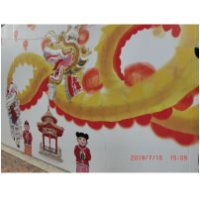 一部が工事中で、壁に大きな龍の絵が描かれていました。