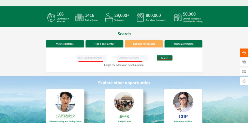 - Enter Your Full Name:受験票に書かれている通りにアルファベット(半角大文字)か中文姓名を入力(姓・名の間には半角スペースがございます。)