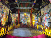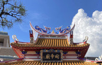 旧暦のお盆に、大施餓鬼供養祭?普渡勝会があり、たくさんの中国系の人が参拝していました。本堂屋根の一対の青龍は真夏の暑い太陽に照らされ色鮮やかに輝いていました。